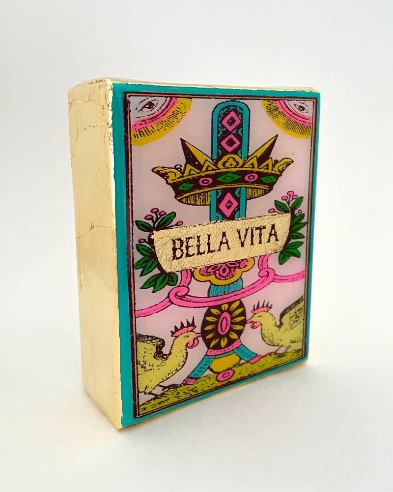Hand finished screen print on canvas with acrylic, enamel, resin and gold leaf.