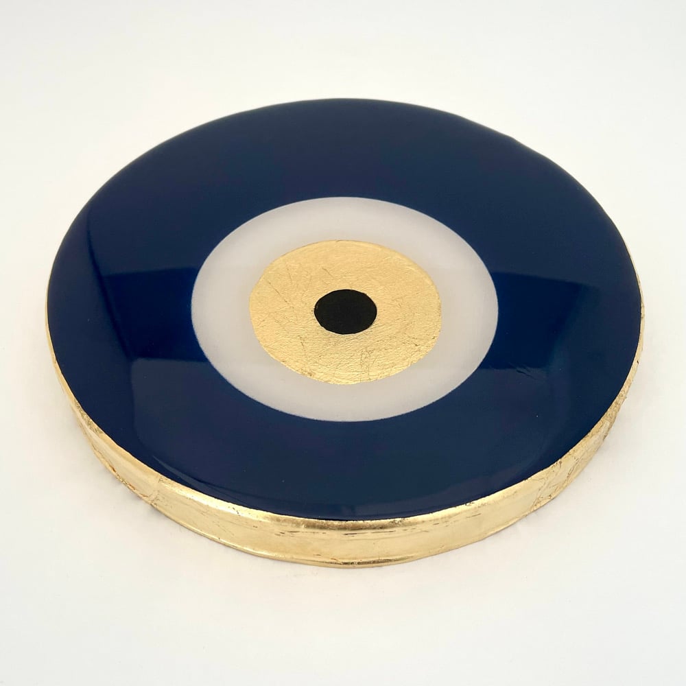 Hand painted canvas with enamel, acrylic and gold leaf and coated with resin.