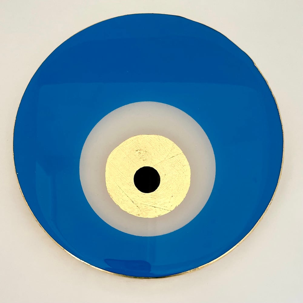 Hand painted canvas with enamel, acrylic and gold leaf and coated with resin.