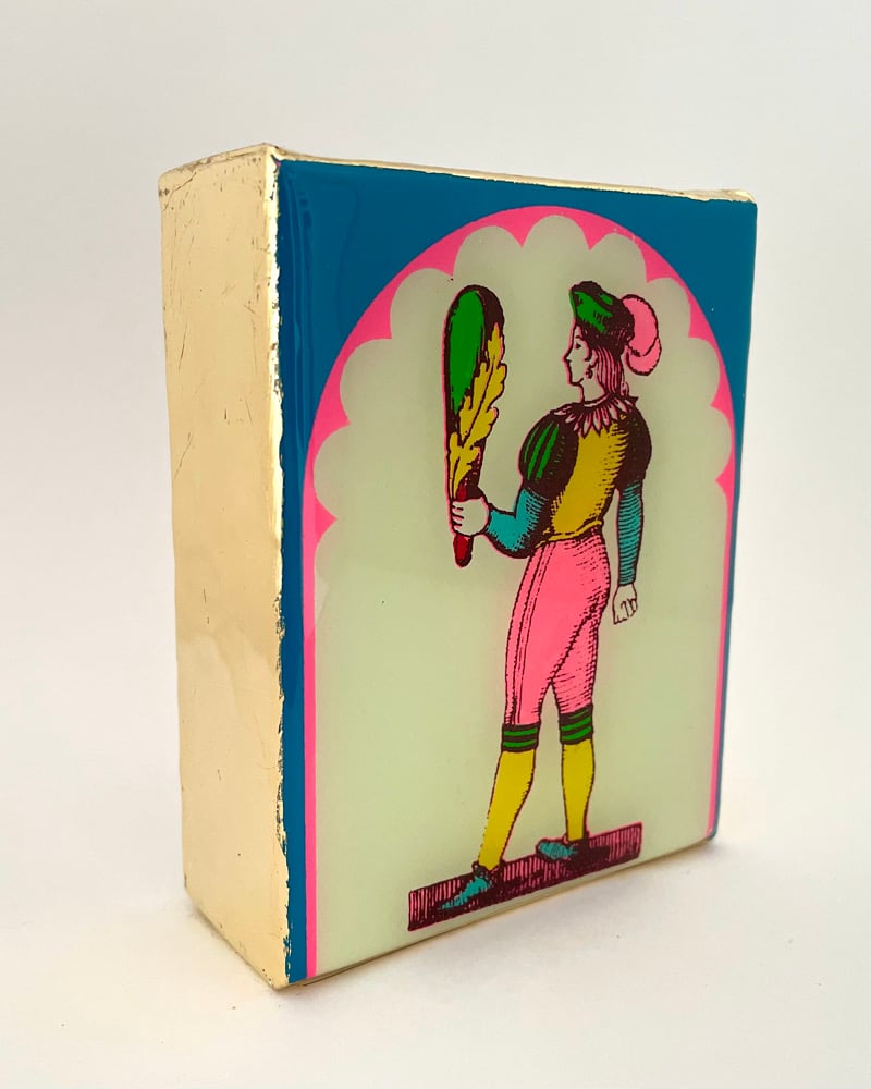 Hand finished screen print on canvas with acrylic, enamel, resin and gold leaf.