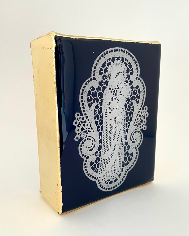 Hand finished screen print on canvas with acrylic, enamel, resin and gold leaf.