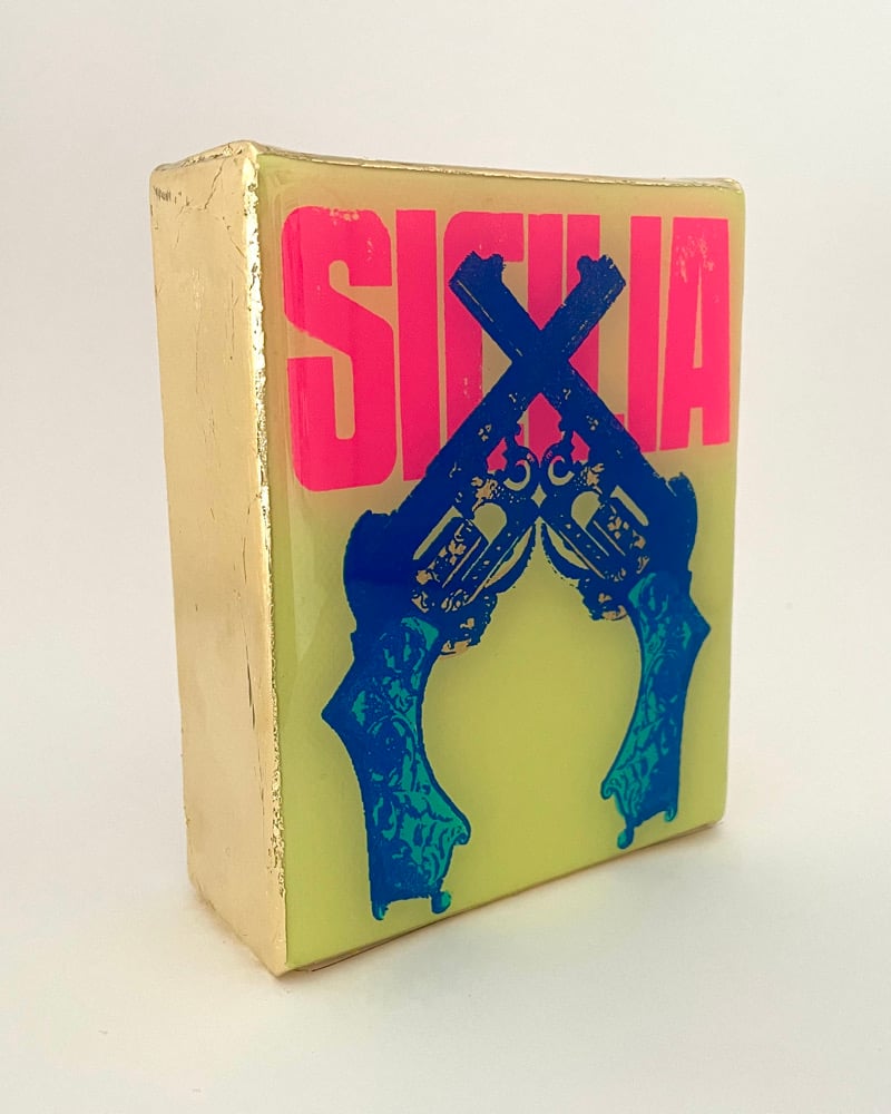 Hand finished screen print on canvas with acrylic, enamel, resin and gold leaf.